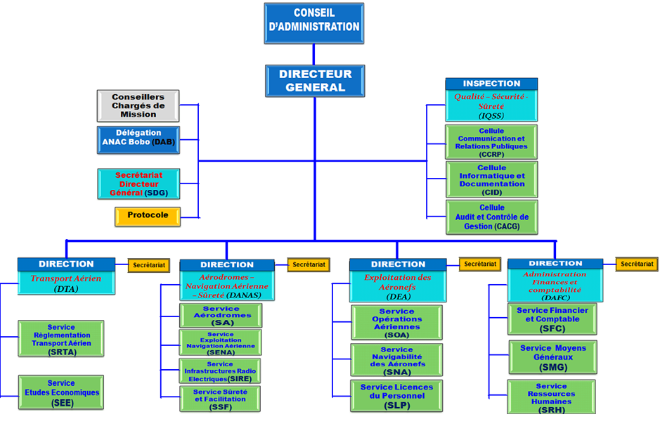 • Le Conseil d’Orientation et de contrôle (COC) : il a mission d’orienter et de contrôler la gestion du Directeur Général et les activités de l’ANAC ;